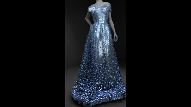 Dress made in Marvelous Designer. Rendered in RenderMan. Used MEL scripts to call a RenderMan RIB of spheres on the vertices and coded the scaling of the spheres.